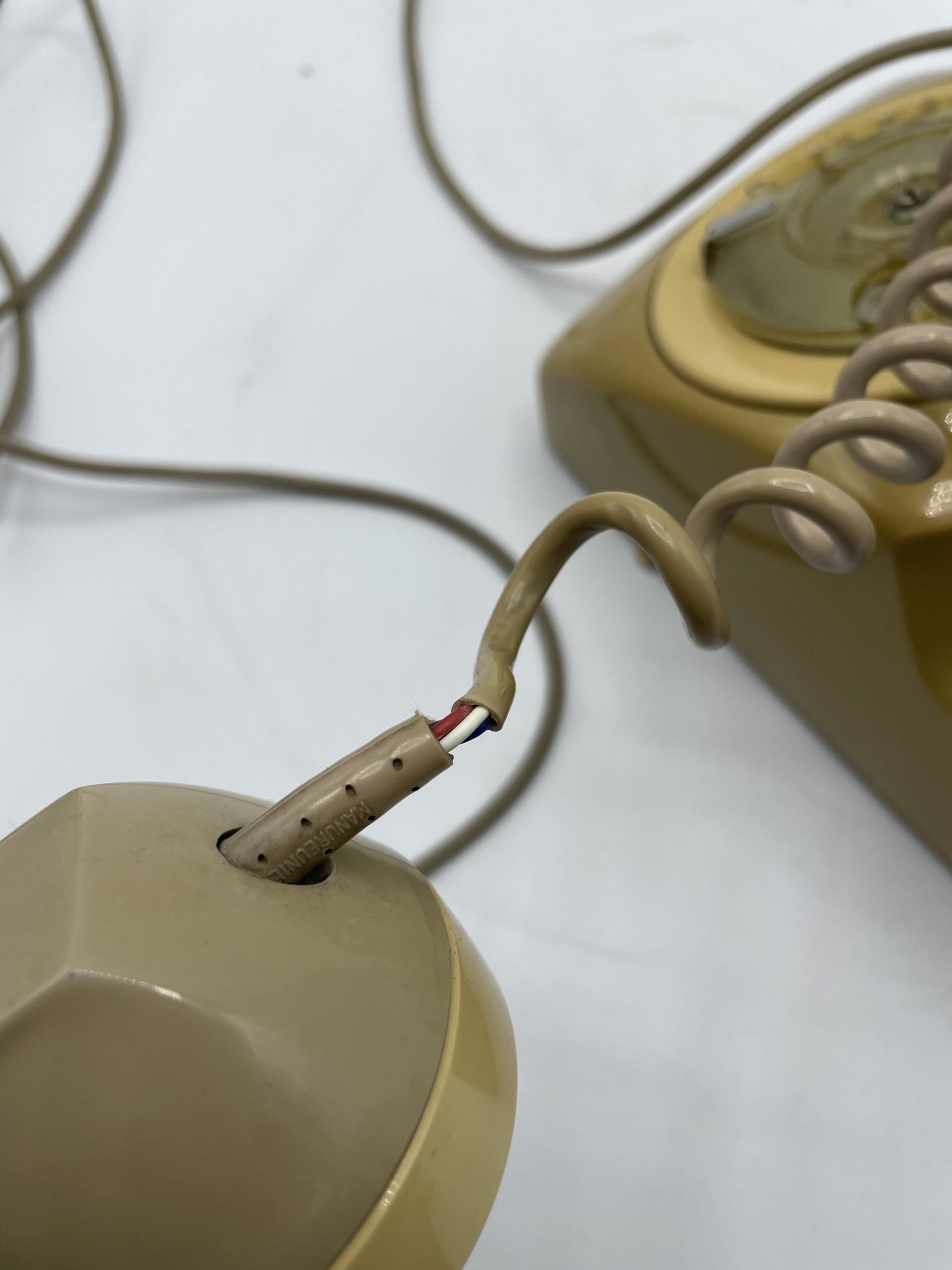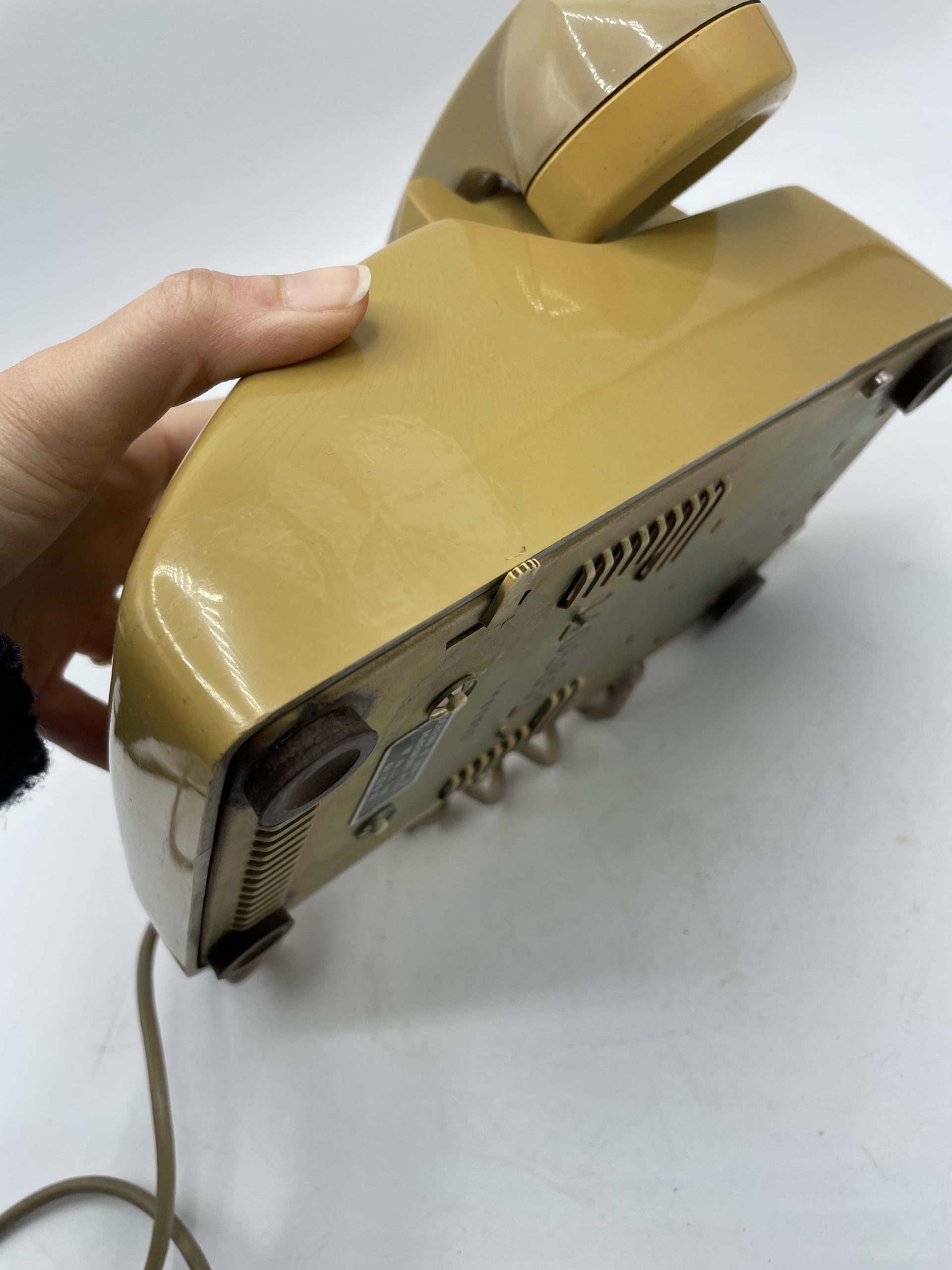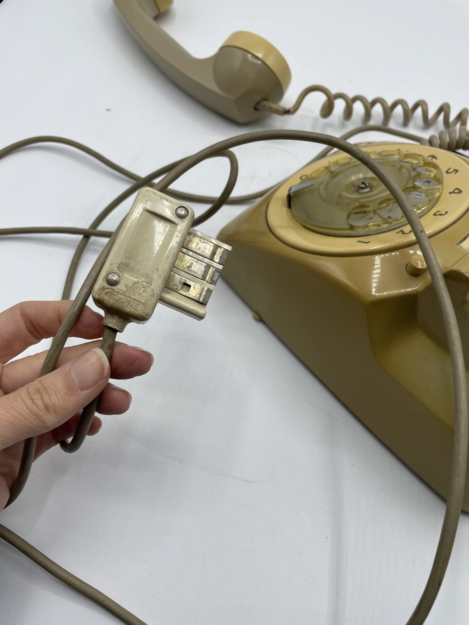 Amoureux d’objet vintage, cet ancien téléphone à cadran saura vous séduire. De couleur beige, ce téléphone est un téléphone CGT ITT. Vintage des années 60 70, des traces d’usure sont à prévoir et les fils du combiné sont dénudés à la base du combiné (cf photos) jolies marques du temps passé. Un joli téléphone hyper rétro qu’on adore !