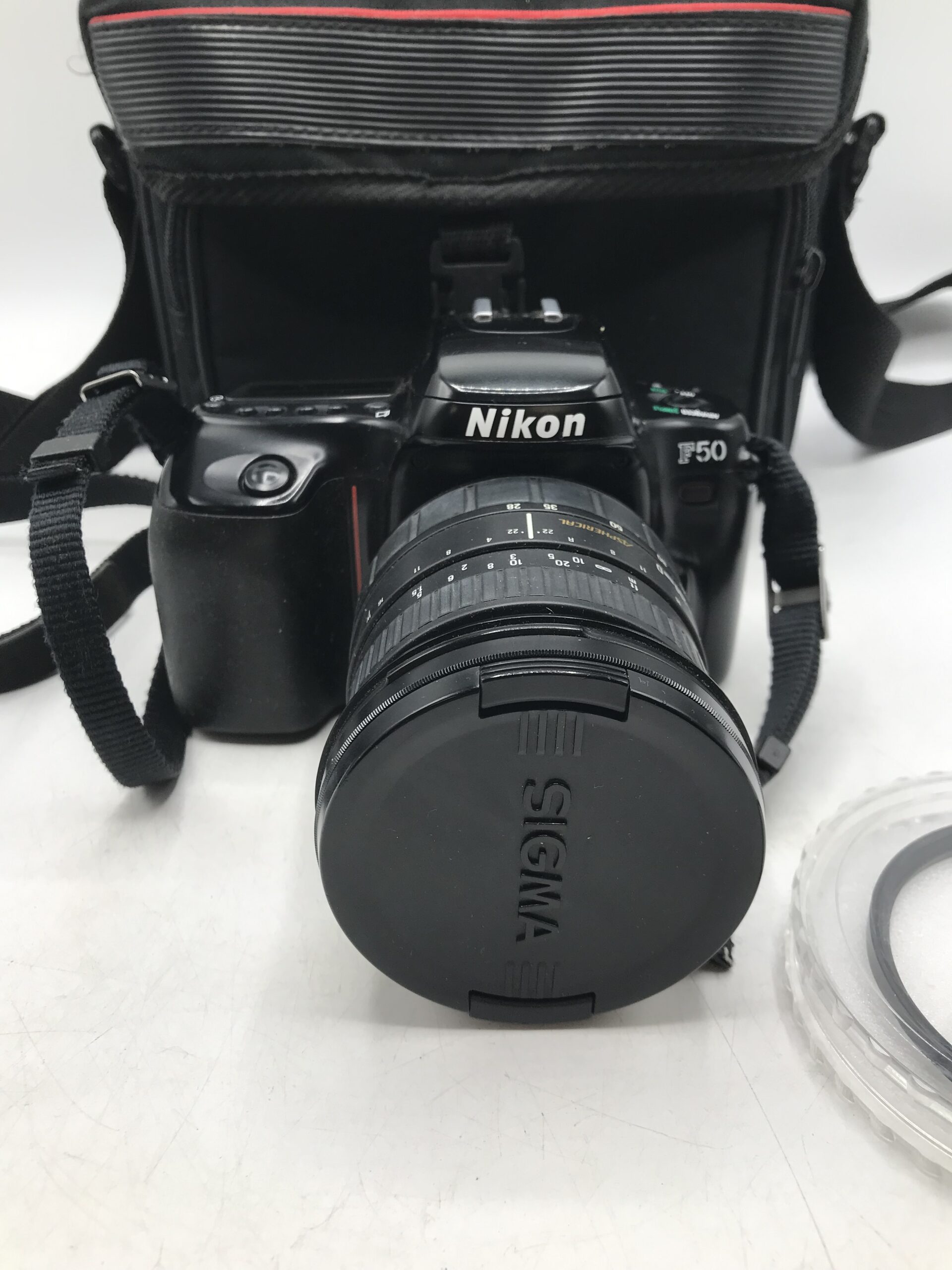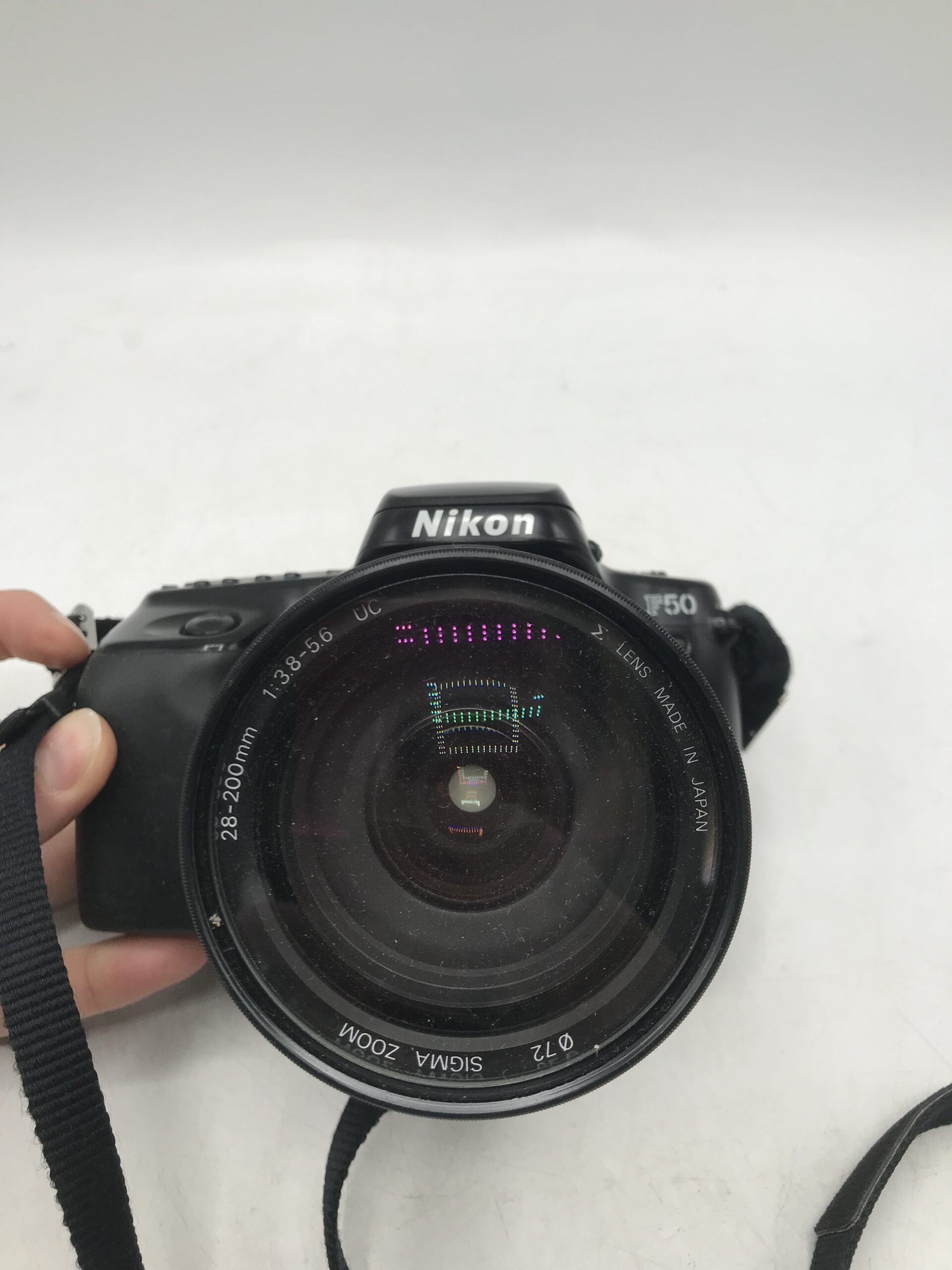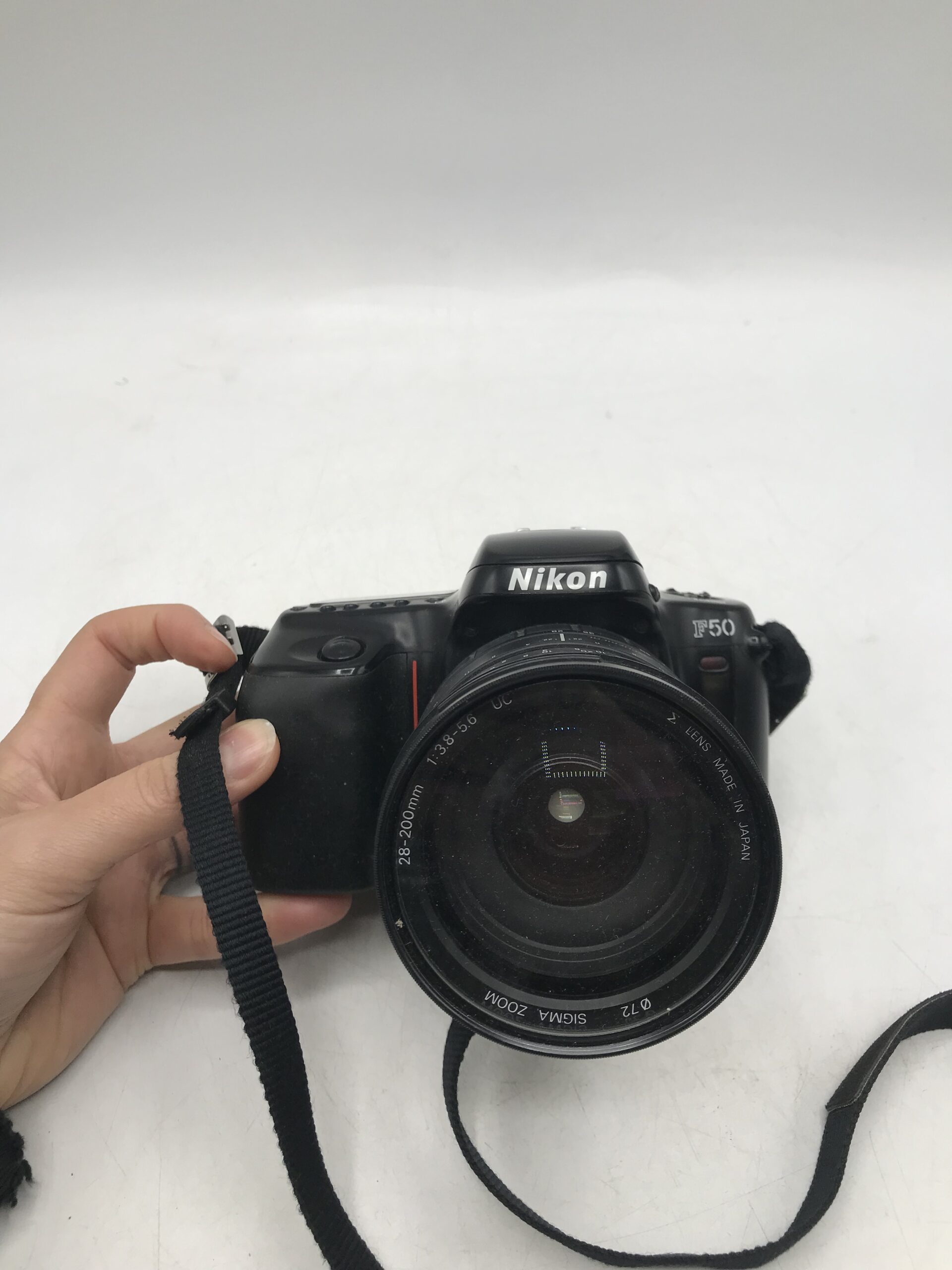 Appareil photo Nikon F50. Bel appareil photo de la marque Nikon modèle F50, il est livré avec un objectif 28-200mmD et un verre Sigma close-up lens 72. Superbe appareil photo vintage qui deviendra un essentiel dans vos balades pour capturer vos instants précieux. L’appareil n’a pas été testé il est vendu en l’état, a noter qu’il n’a pas de batterie livrée avec. Une pochette de rangement l’accompagne ce qui est bien pratique pour le protéger. Amoureux de la marque Nikon et des appareil anciens, il est pour vous. Offrez lui une belle seconde vie. Nikon une marque qui traverse le temps.