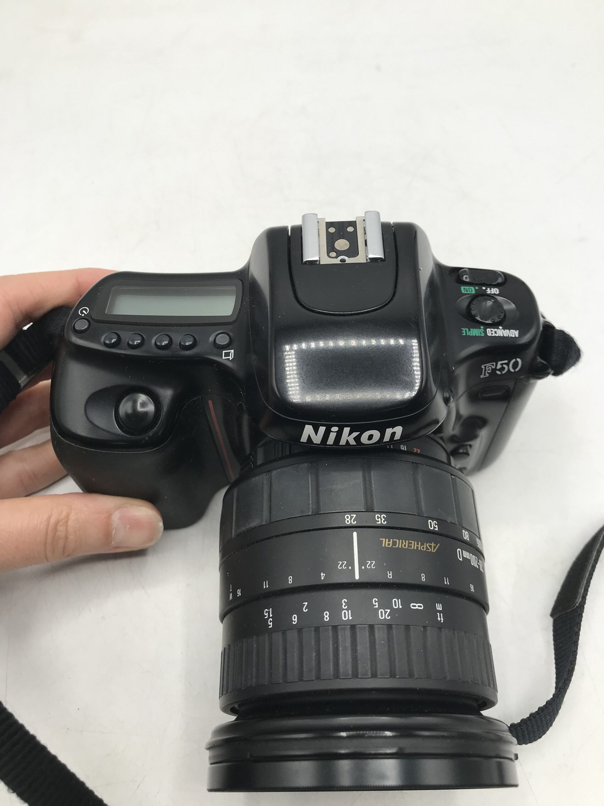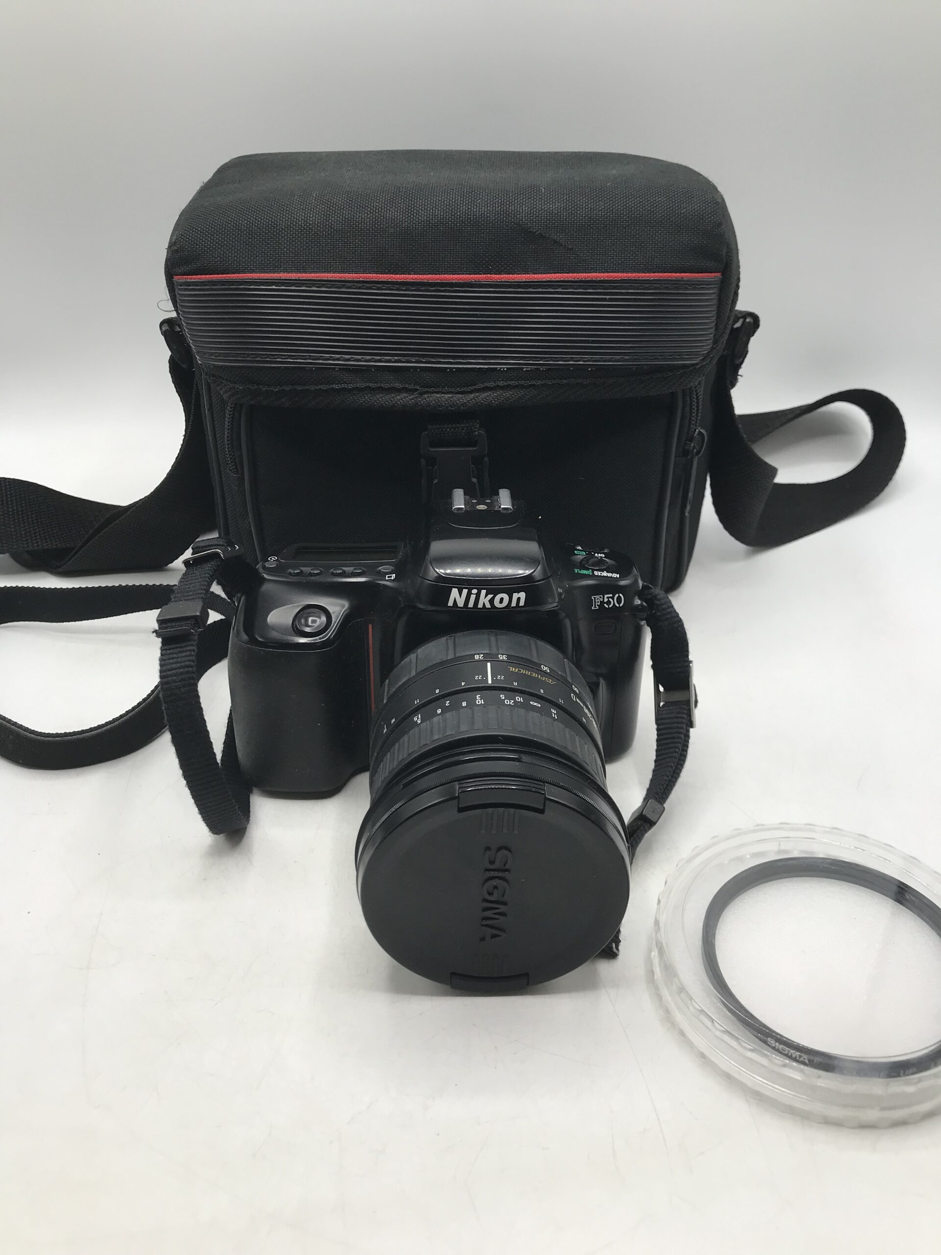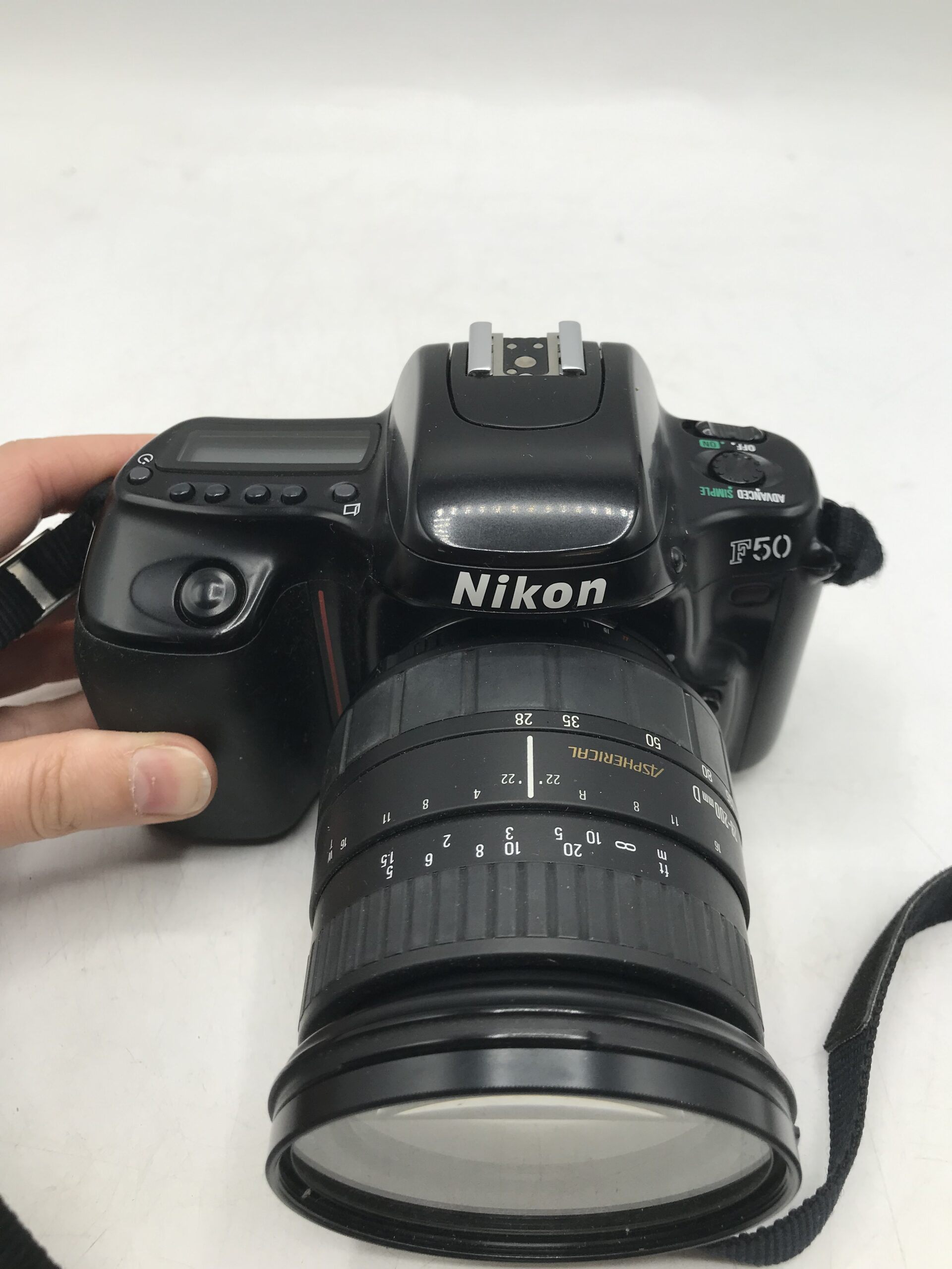Appareil photo Nikon F50. Bel appareil photo de la marque Nikon modèle F50, il est livré avec un objectif 28-200mmD et un verre Sigma close-up lens 72. Superbe appareil photo vintage qui deviendra un essentiel dans vos balades pour capturer vos instants précieux. L’appareil n’a pas été testé il est vendu en l’état, a noter qu’il n’a pas de batterie livrée avec. Une pochette de rangement l’accompagne ce qui est bien pratique pour le protéger. Amoureux de la marque Nikon et des appareil anciens, il est pour vous. Offrez lui une belle seconde vie. Nikon une marque qui traverse le temps.