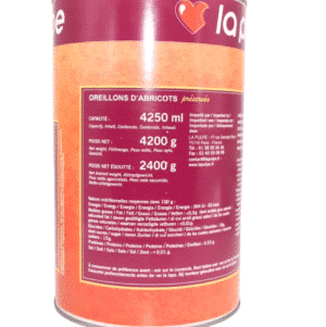 Les boîtes 5/1 d’Oreillons d’Abricots Pelés Préservés contiennent des abricots sélectionnés avec soin.