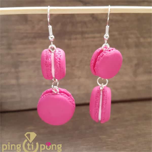 Boucles d’oreilles fantaisies vendues à l’unité ou en paires.  Ces boucles sont très originales, elles présentent deux macarons roses, l’un plus petit que l’autre.