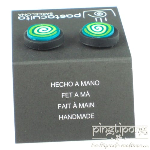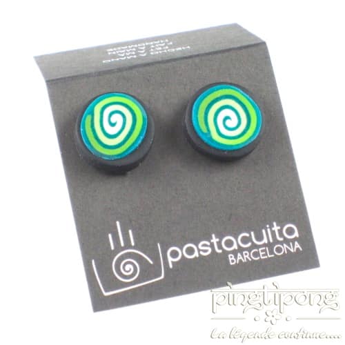 Jolies petites boucles d’oreilles rondes vertes et jaunes de marque « Pastacuita ».