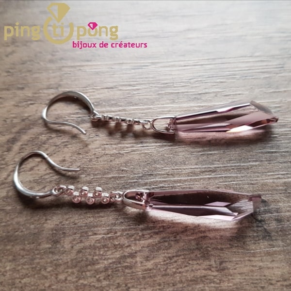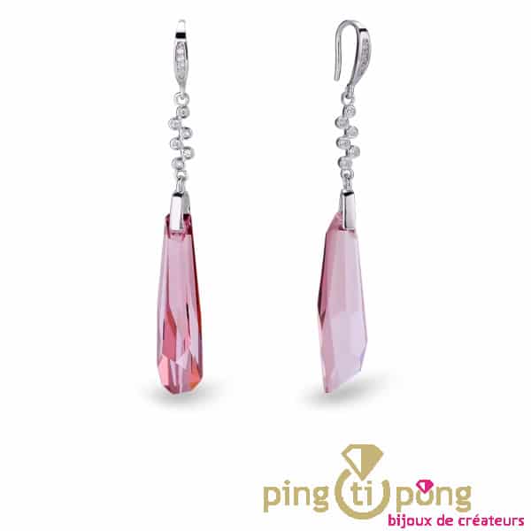 Très belles boucles pendantes en argent 925 ornées de cristaux de Swarovski.