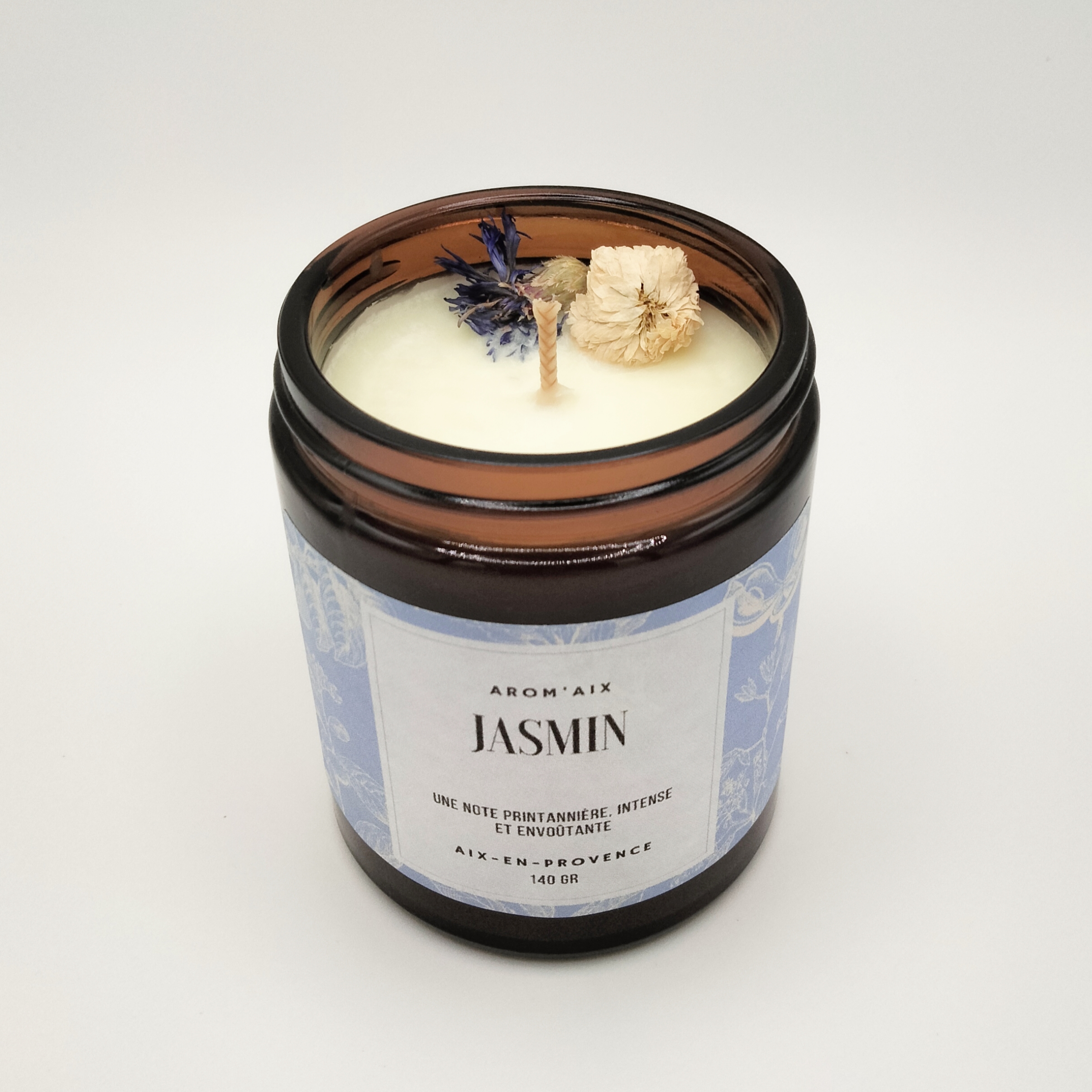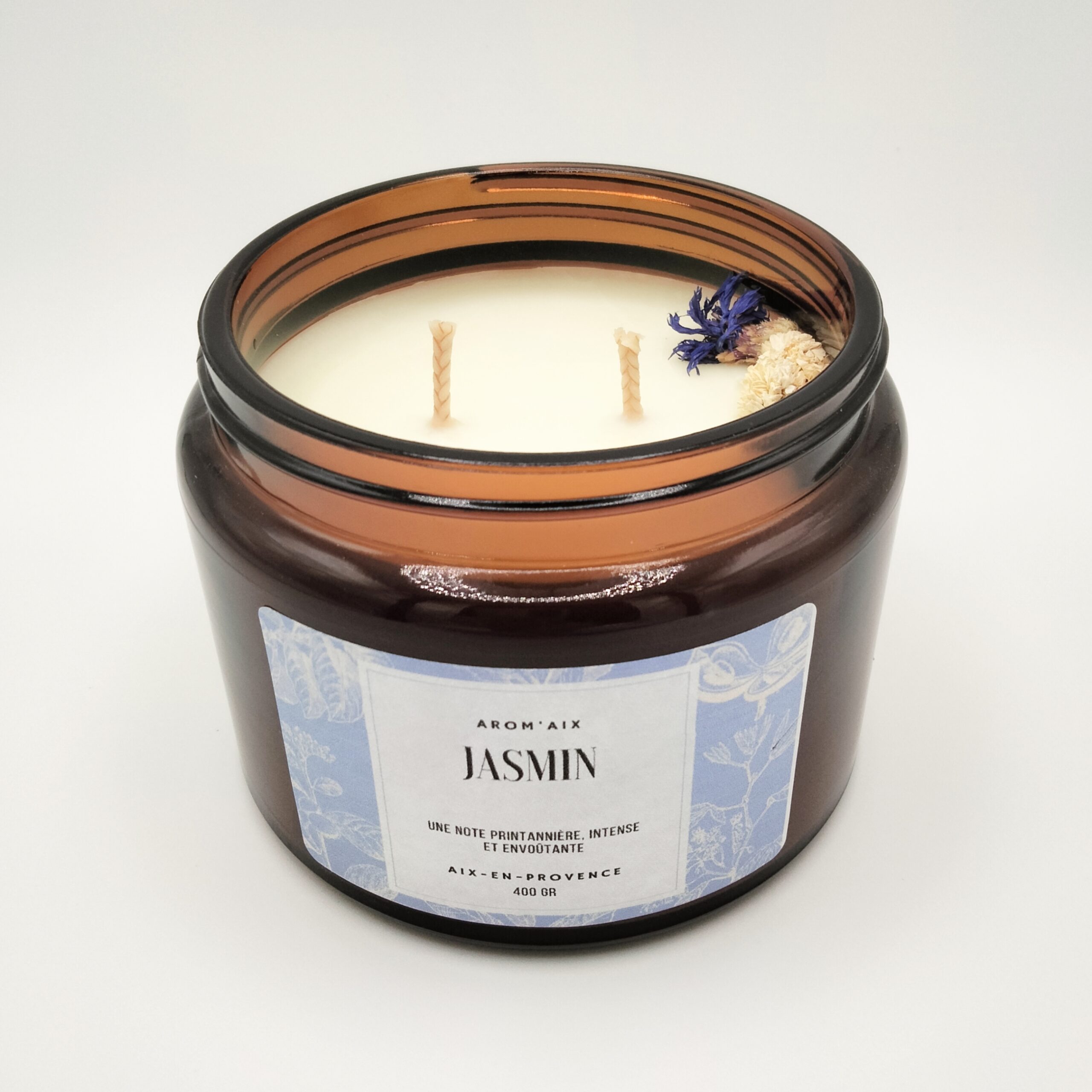 Découvrez notre bougie parfumée au Jasmin, une note printannière, intense et envoûtante.