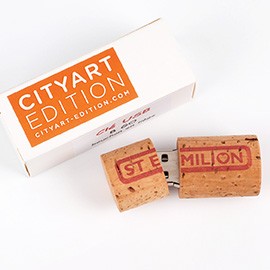 La clé USB en forme de bouchon de bouteille de vin est fabriquée en vrai liège. Cette clé USB marquée BORDEAUX Ville de Coeur© est un joli Souvenir et pratique à la fois.