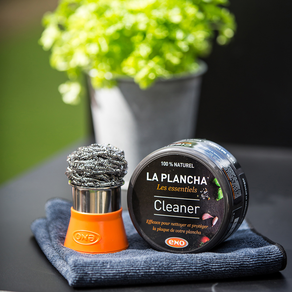 Nécessaire de nettoyage pour plancha: boule inox, microfibre, cleaner