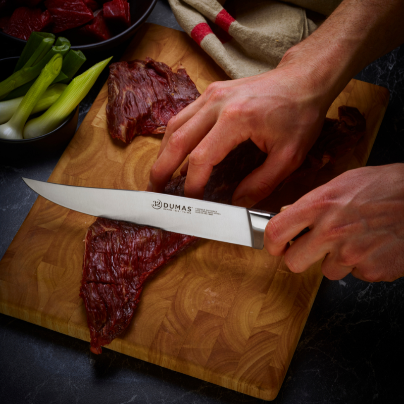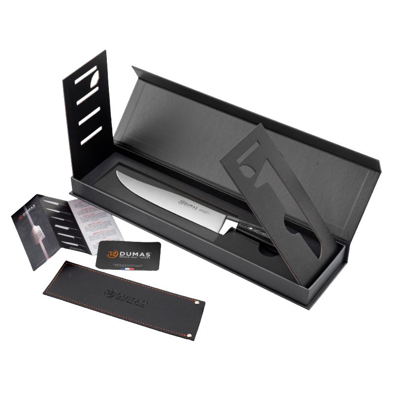 32 Dumas® est la plus ancienne marque de coutellerie française, fondée en 1532 à Thiers, capitale historique du couteau. Alliant tradition artisanale et innovation (acier inox renforcé, collections modernes), 32 Dumas® est aujourd’hui une référence pour les professionnels de la cuisine et incarne l’excellence de la coutellerie thiernoise.