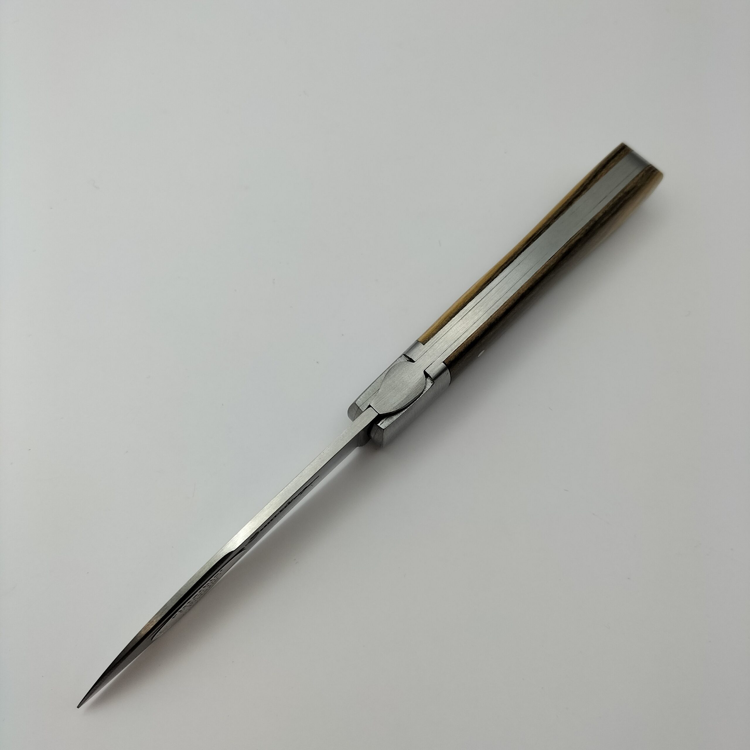 La lame en acier inoxydable 12c27 de 7,4 cm offre un tranchant exceptionnel et une résistance à la corrosion, garantissant une coupe fiable au quotidien. L’acier 12c27 est réputé pour sa netteté durable et sa facilité d’entretien.