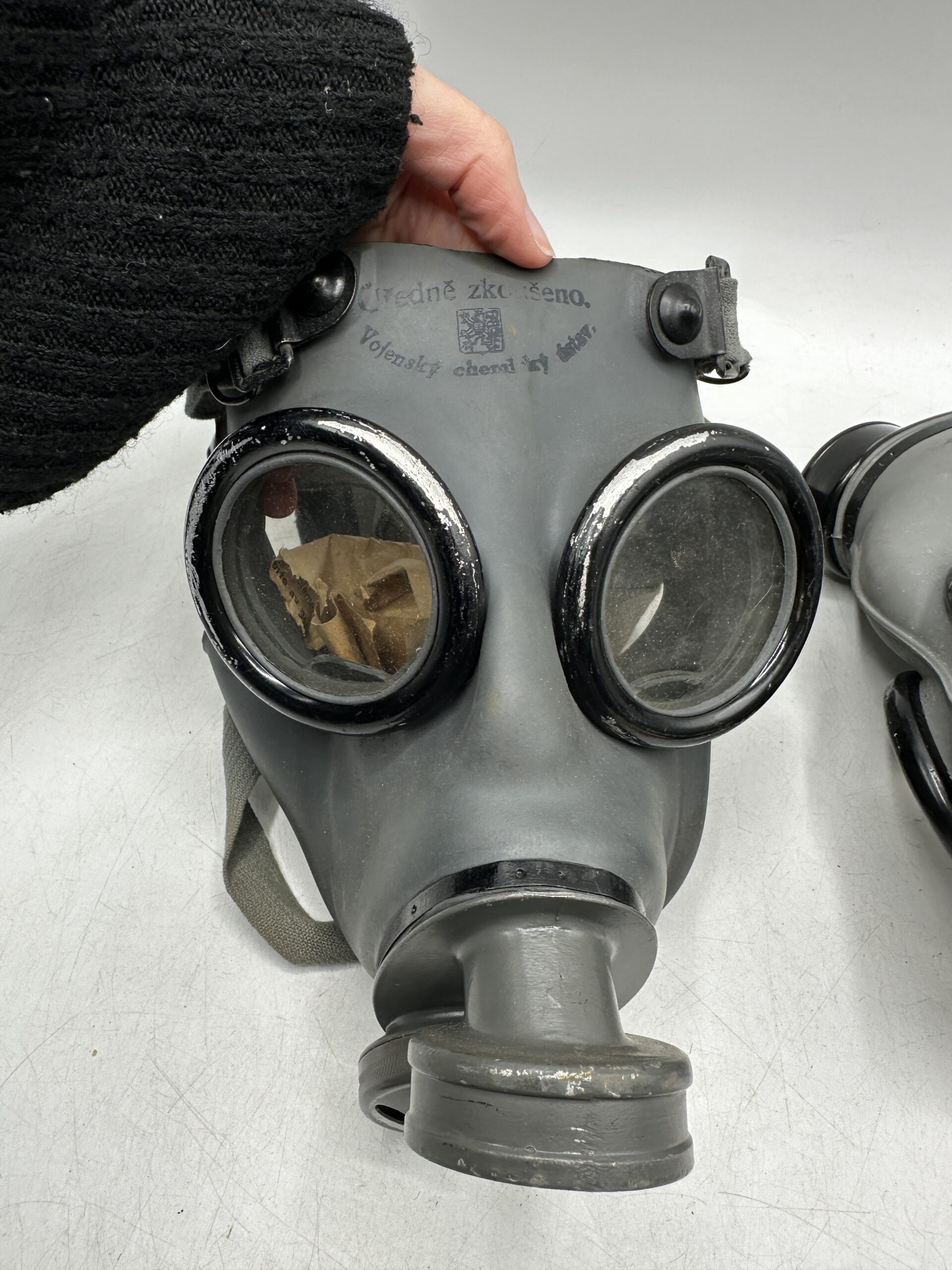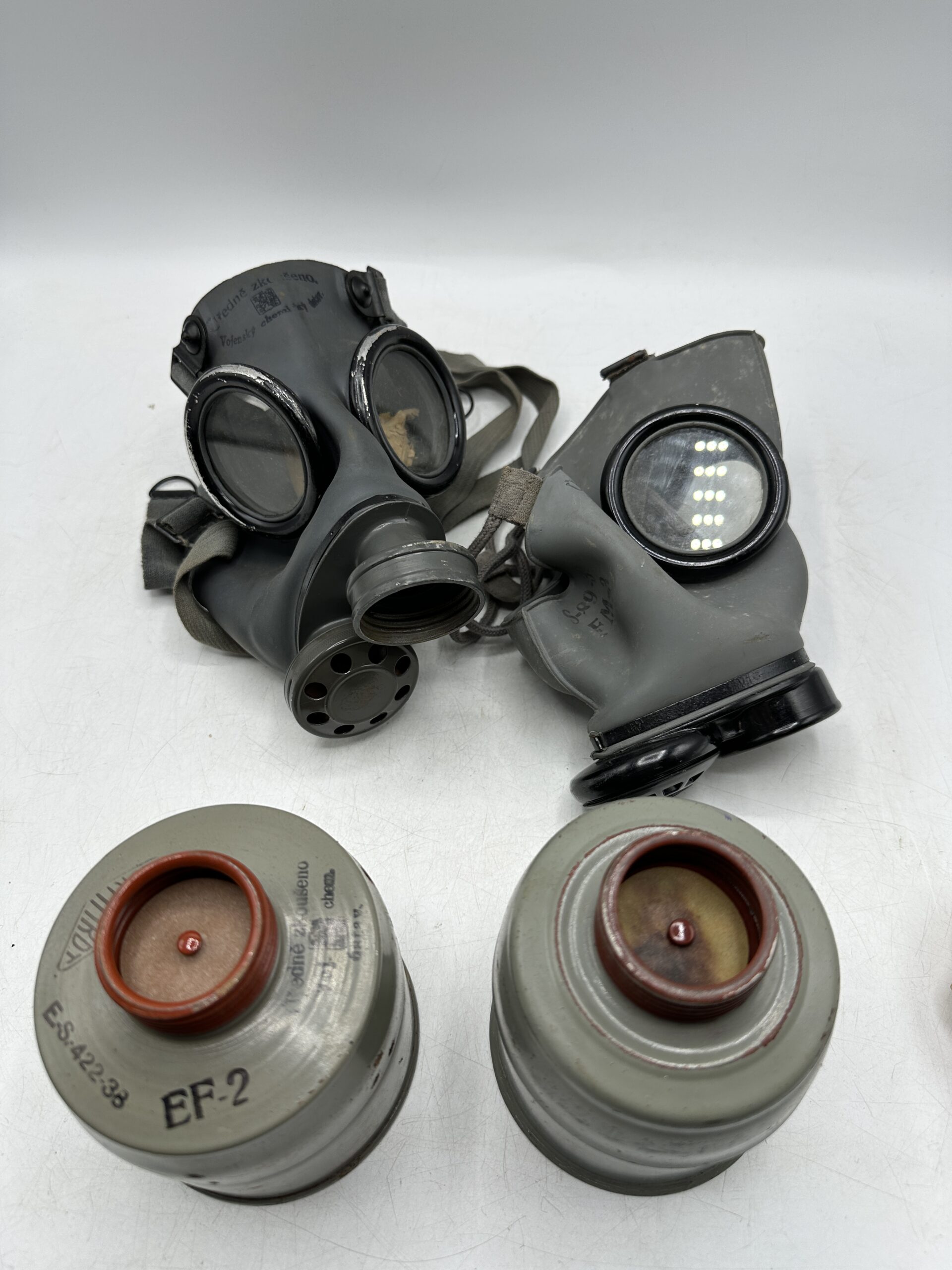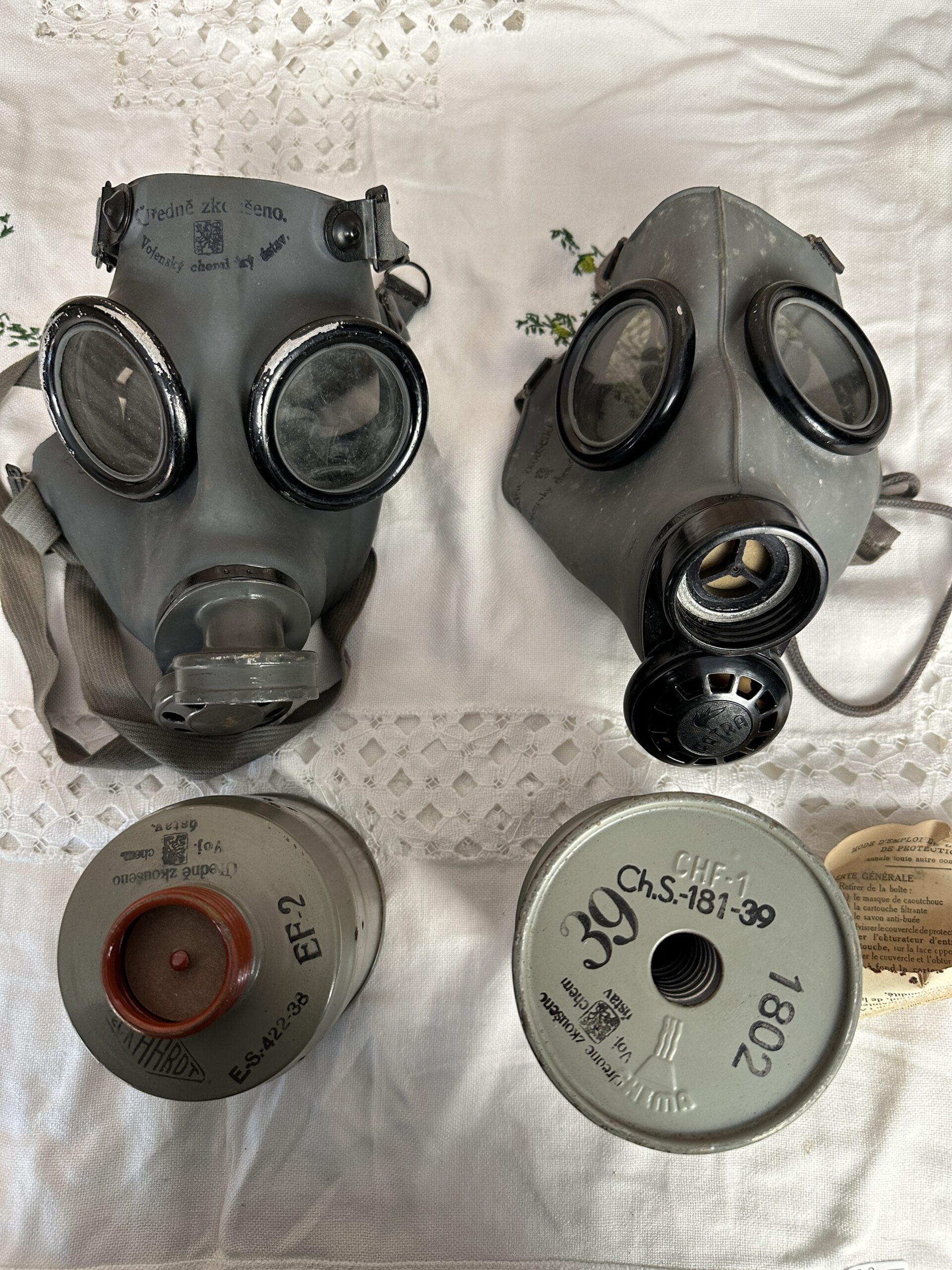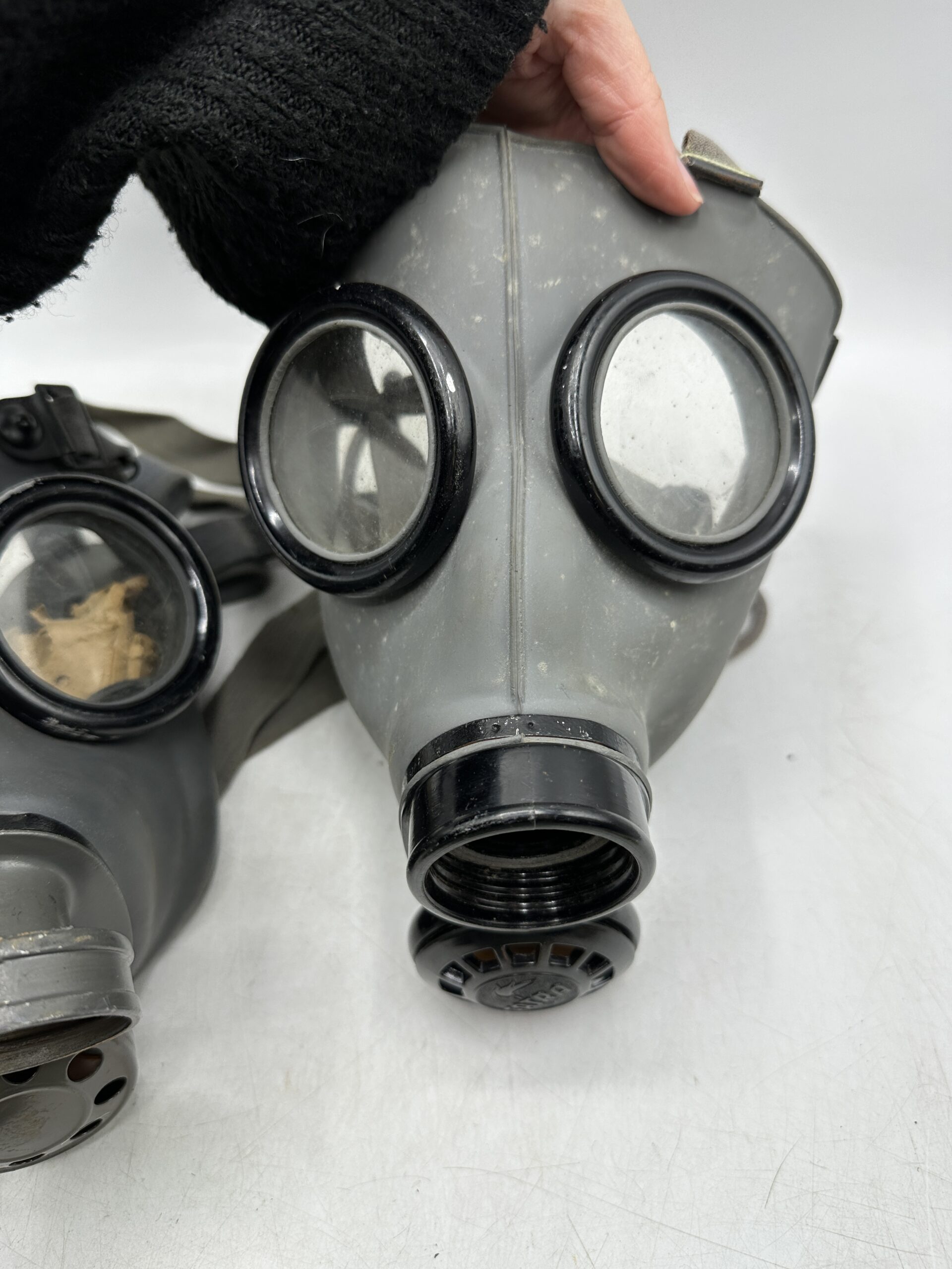 Pour les passionnés d’histoire, et ceux qui veulent agrandir leur collection. Duo de masques à gaz anciens seconde guerre mondiale