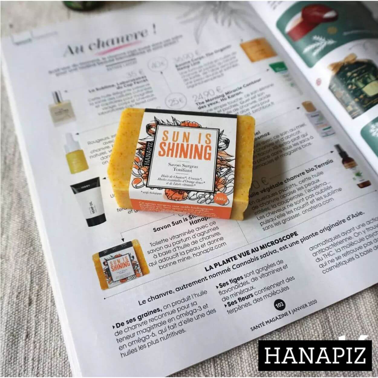 HANAPIZ – Savon surgras au chanvre – SUN IS SHINING 100g
