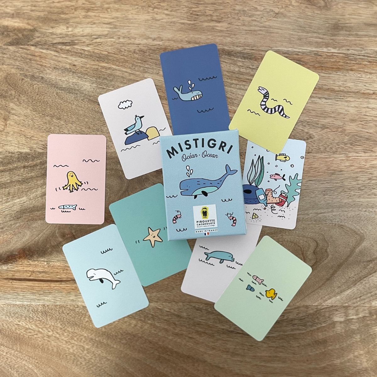 Transformez vos parties de cartes en une aventure marine pleine d’amusement et de sensibilisation. Avec ses cartes colorées et son concept éducatif, « Mistigri Océan » est parfait pour partager des moments uniques en famille. Bonus : des cartes pédagogiques et un coloriage pour éveiller les plus jeunes à la richesse des océans. Fabriqué en France, c’est le cadeau idéal pour petits et grands !