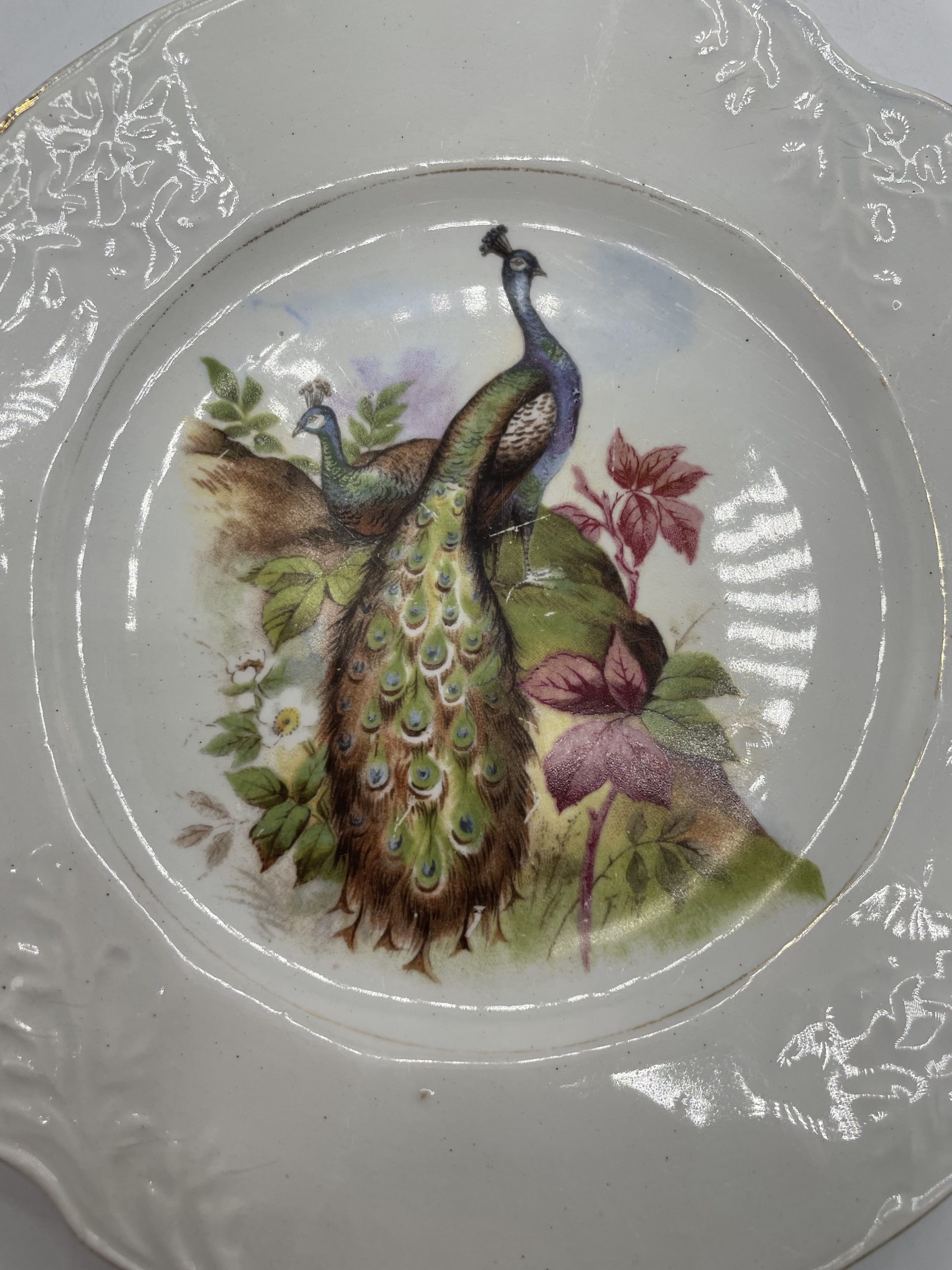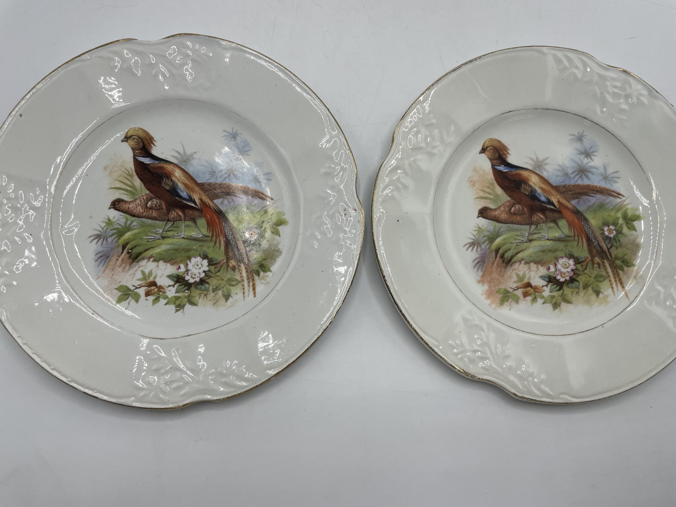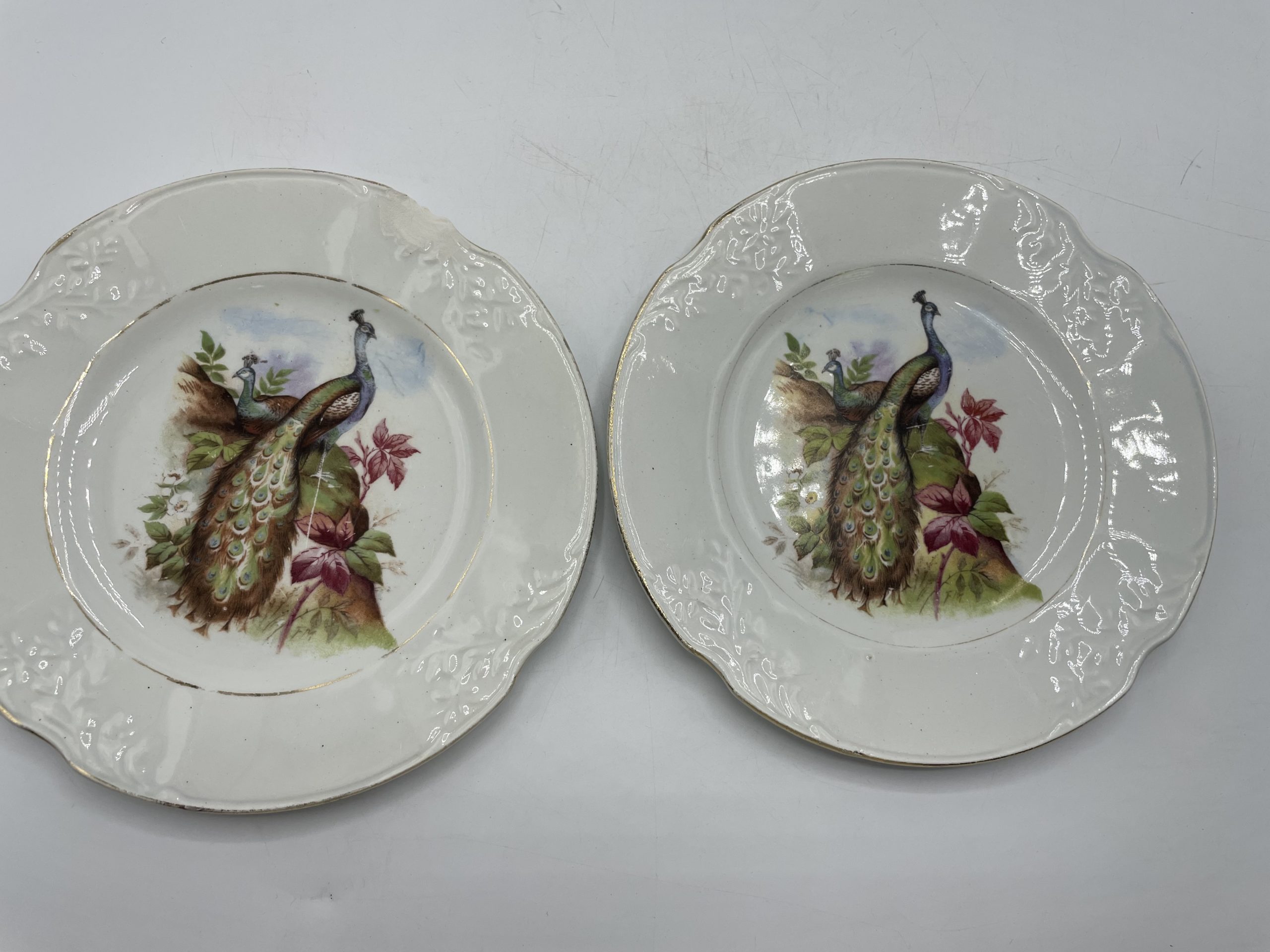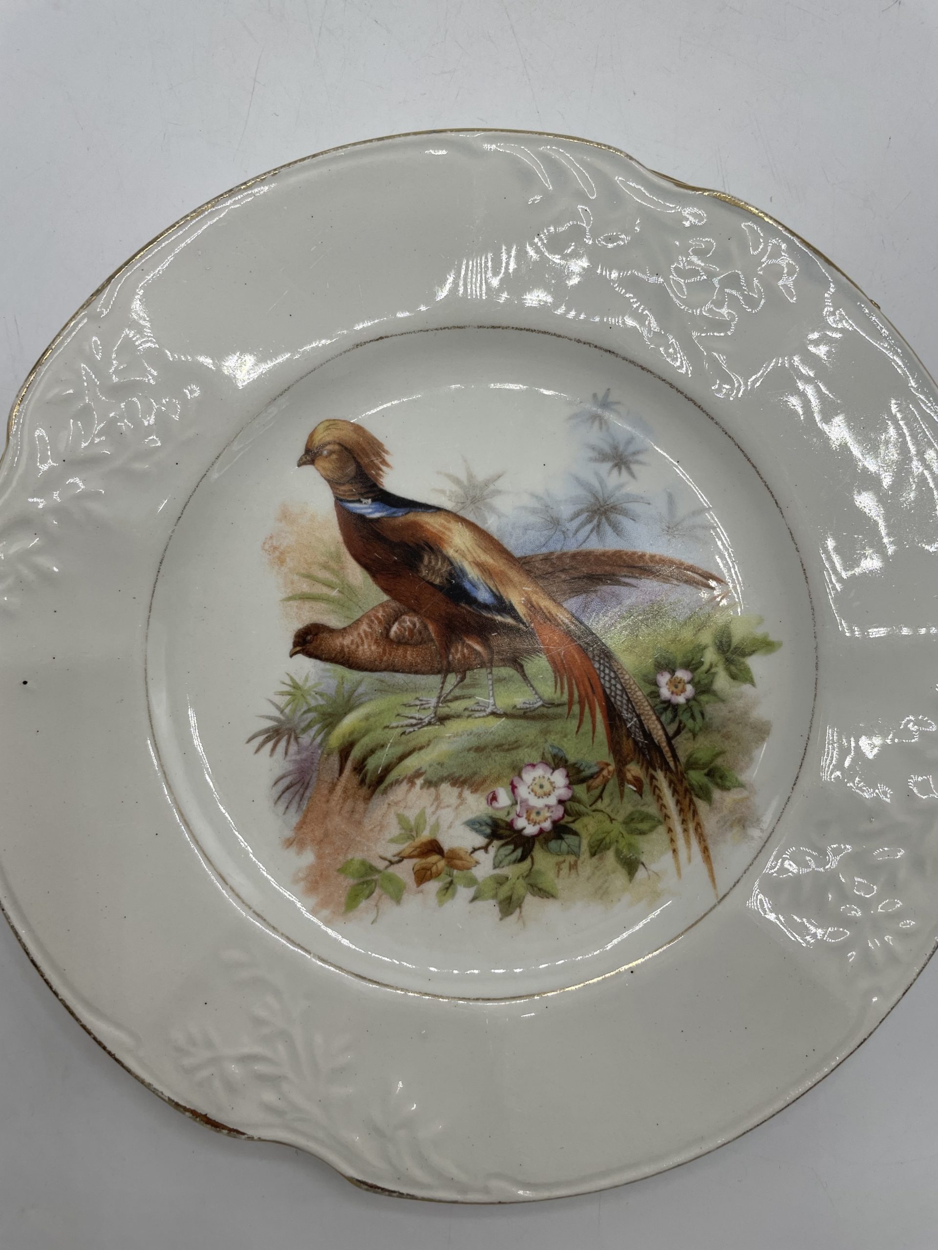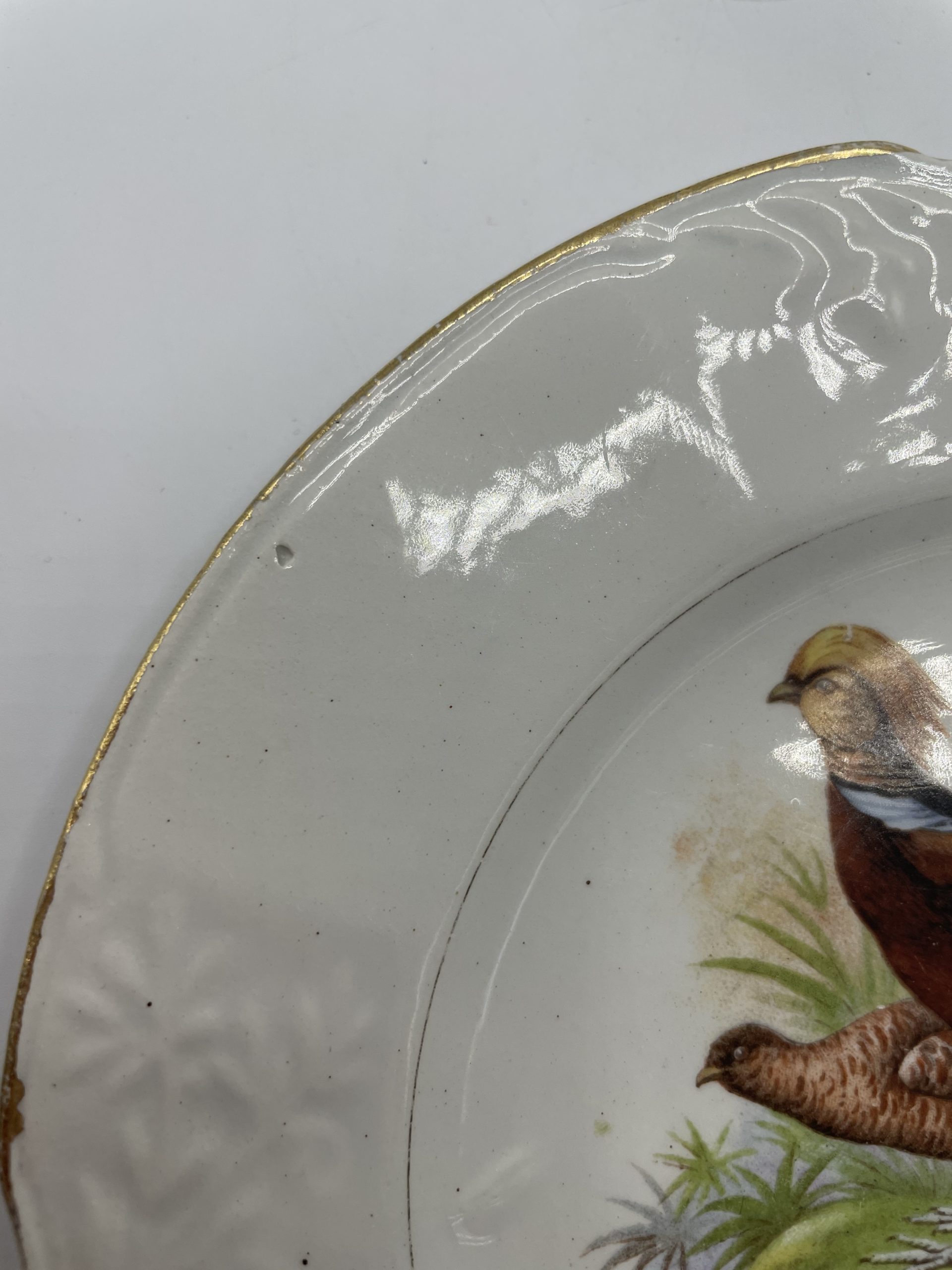 Ce joli lot se compose de 6 petites assiettes vintage. En faïence, ces assiettes sont estampillées Moulin des Loups Hamage Orchie. De couleur blanche, les assiettes une forme particulière et elles sont décorées de motifs d’oiseaux : paons, perdrix et faisans, et de liserés dorés. Vintage, des traces d’usure sont à prévoir ainsi qu’un éclat sur une des assiettes paons. Une jolie collection à la fois champêtre et élégante !