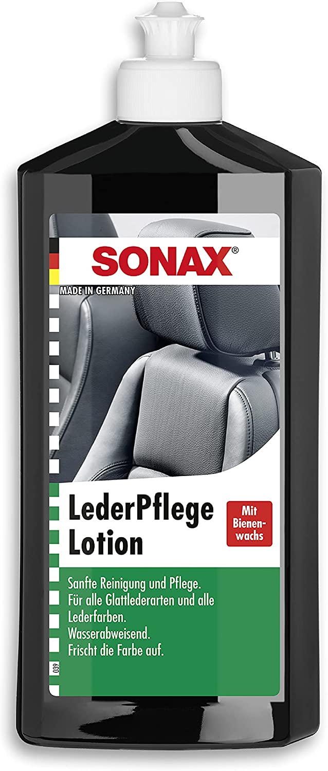 La lotion d’entretien du cuir Sonax est une émulsion de nettoyage et d’entretien de haute qualité pour tous les cuirs lisses et artificiels tels que les intérieurs de voitures, les combinaisons de motos, les sacs, les meubles, les chaussures, etc.