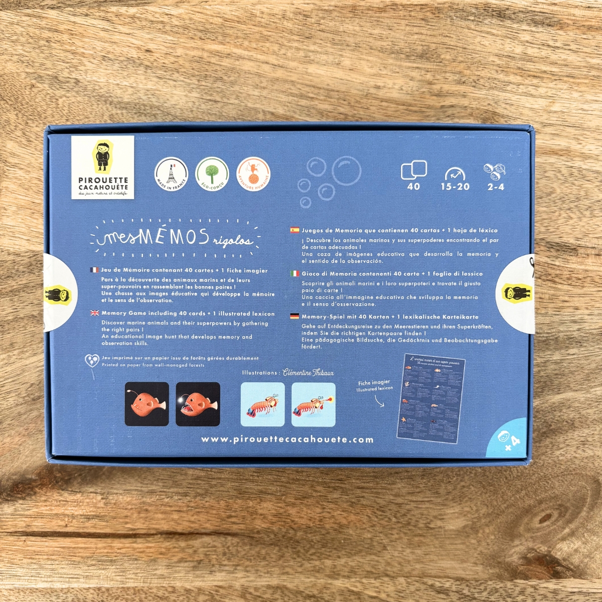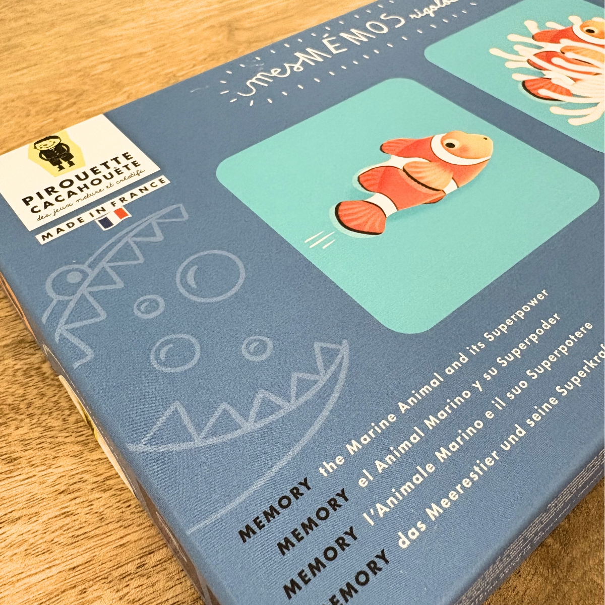Conçu spécialement pour les petites mains, ce mémo coloré amusera vos enfants tout en leur apprenant à reconnaître les animaux marins et leurs super-pouvoirs.
