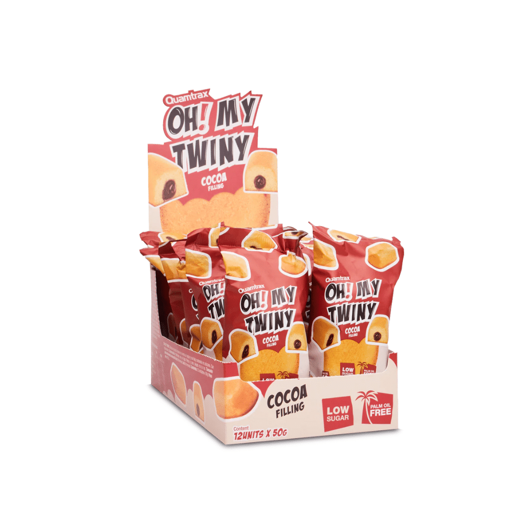 OH MY TWINY de Quamtrax est un gâteau moelleux à faible teneur en sucres, disponible en deux saveurs irrésistibles : cacao et crème. Il est conçu pour les personnes souhaitant se faire plaisir sans compromettre leur régime alimentaire. Le complément convient parfaitement aux amateurs de collations saines. Mais aussi aux sportifs et à ceux qui surveillent leur consommation de sucre. C’est une alternative saine aux brioches classiques généralement trop caloriques, trop sucrées et trop grasses.