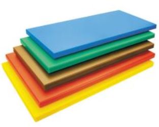 L’utilisation de planches de couleurs différentes selon les produits à couper évite les risques de contamination croisée (méthode HACCP).