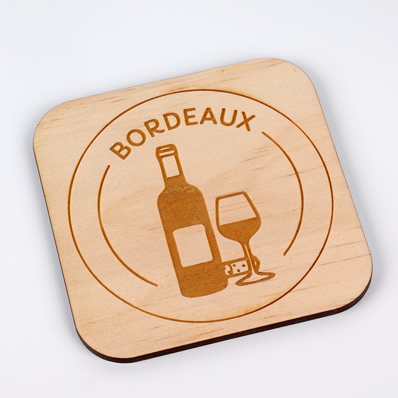 Sous-verre en bois carré – avec gravure «Un bon BORDEAUX»