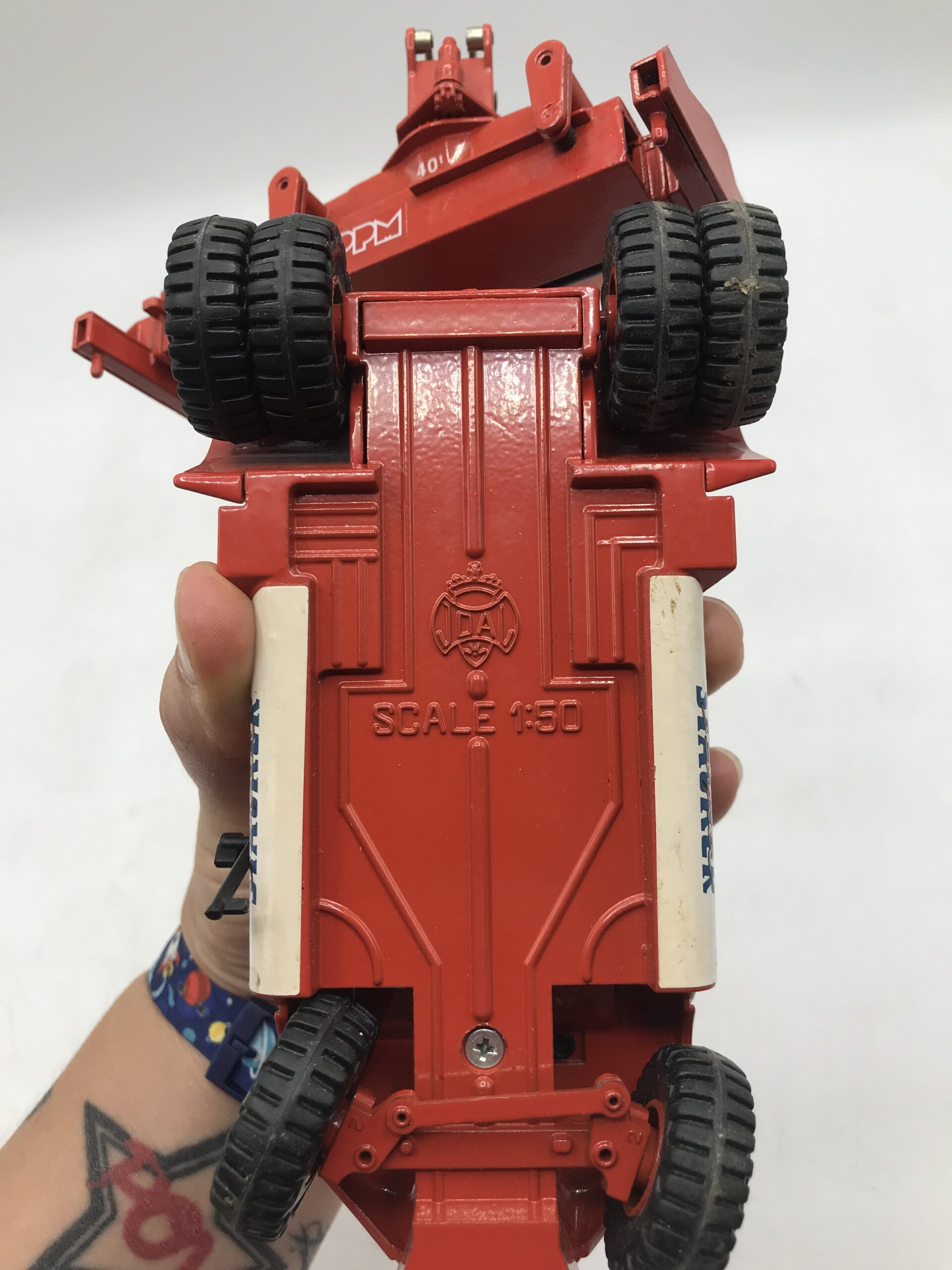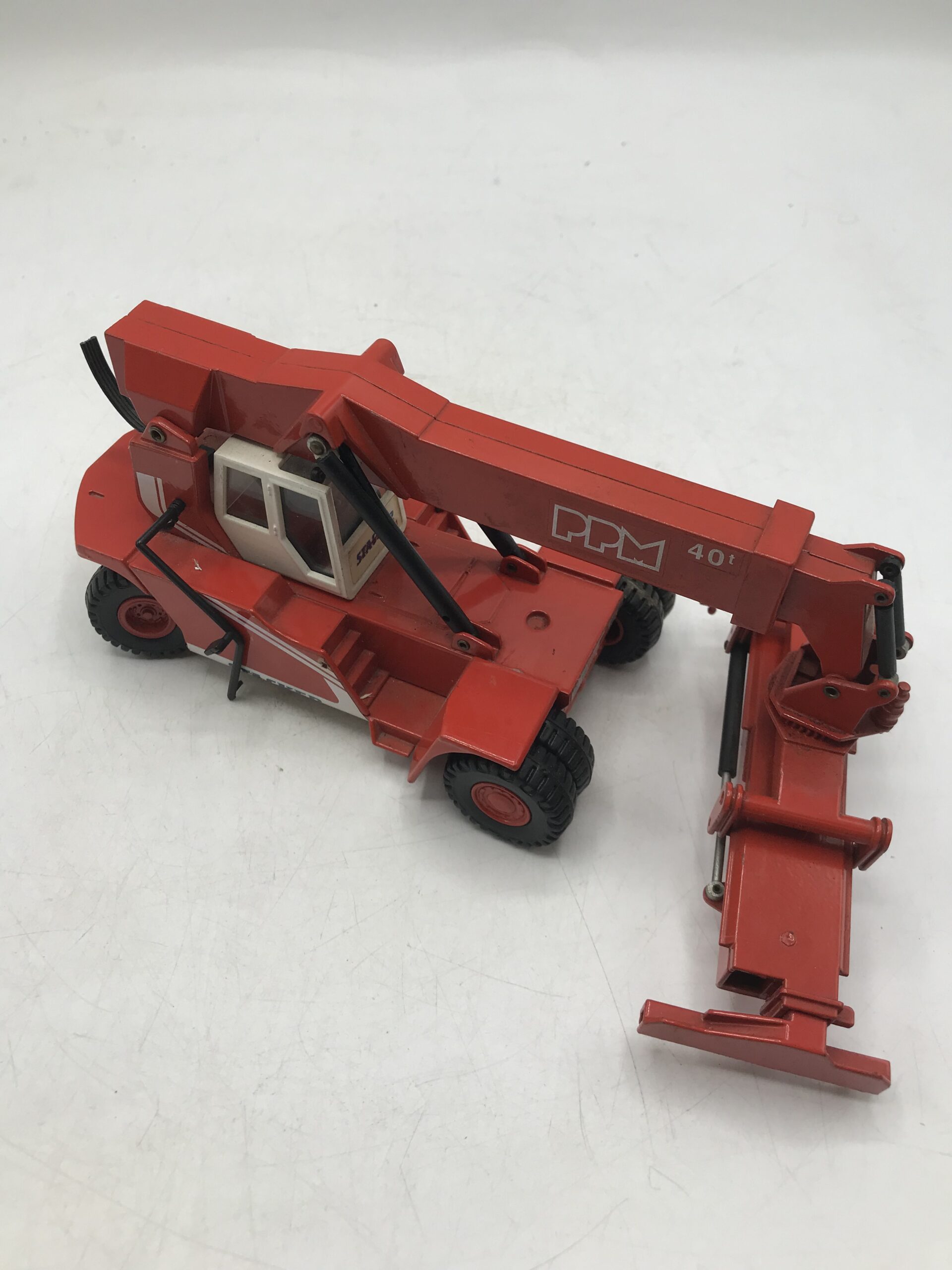 Trio camion JOAL vintage. Joli lot de 3 jouets anciens. Ce lot est composé d’un camion grue télescopique JOAL PPM 45T 530 ATT, à l’échelle 1/50. Il est en bon état quelques marques du temps a signaler. Pour l’accompagner un JOAL compact super stacker PPM 169 MIB à l’échelle 1/50, a noter que ce dernier a des parties abimées au niveau des tubes en plastique. Et pour finir un chariot élévateur Fenwick à l’échelle 1/25 référence conrad H20-25. Un trio qui séduira les nostalgiques des jouets anciens et les collectionneurs de miniatures. Avis aux fans, ils attendent un nouveau foyer pour commencer une seconde vie.