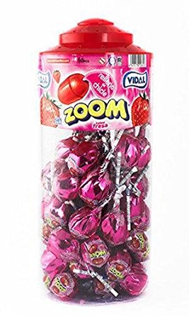 Sucettes amusantes à saveur de fraises fourrées de bubblegum. Chaque sucette est emballée individuellement et peut être vendue directement à partir de la baignoire.
