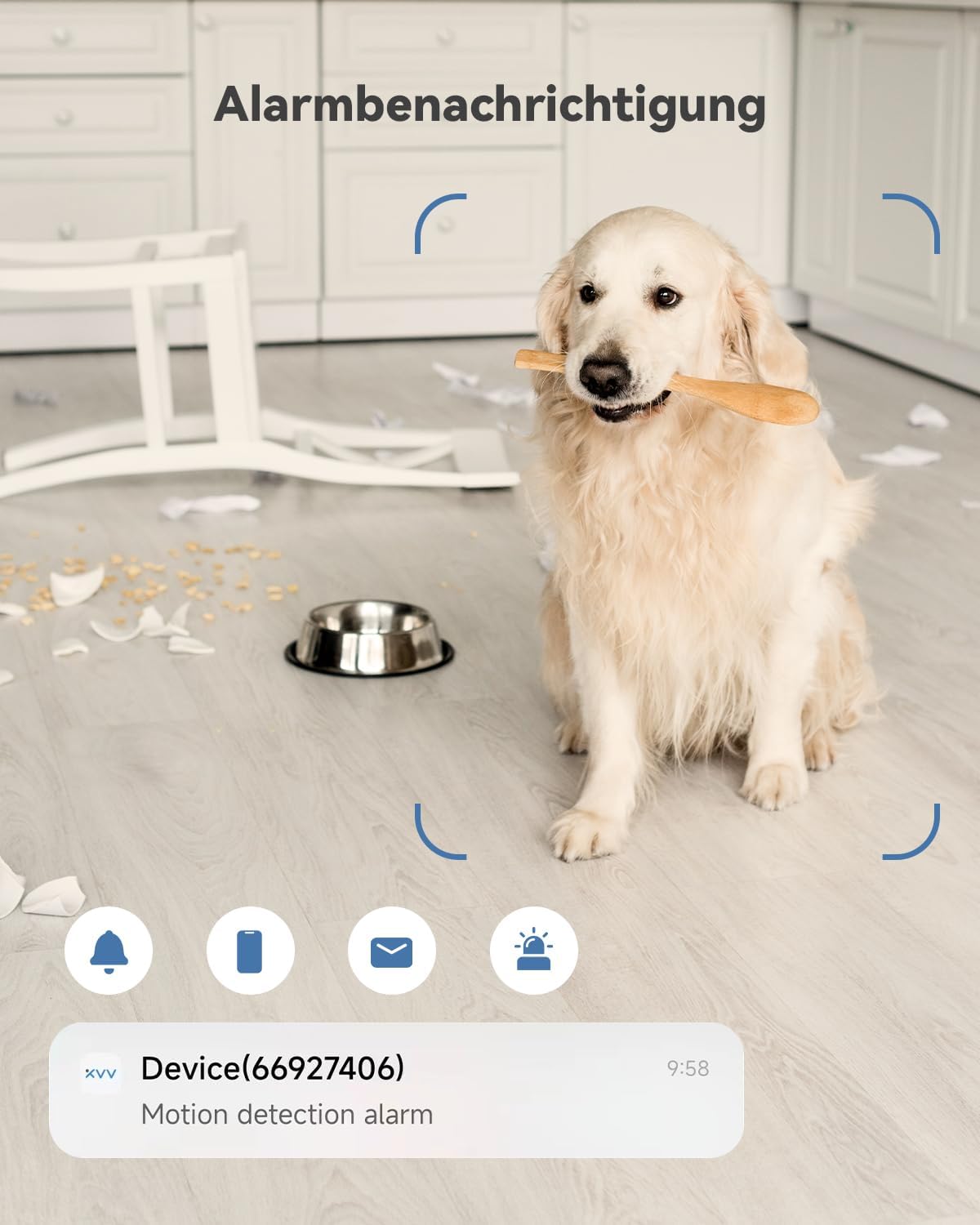 Caméra pour animaux de compagnie avec alarme de mouvement, suivi et avertissement vocal : la caméra de surveillance WiFi fournit une alarme, un suivi de mouvement et des avertissements vocaux. Lors du déplacement dans l’image de surveillance, il envoie une notification à l’application. Il suit automatiquement les objets en mouvement jusqu’à ce qu’ils disparaissent du champ de vision et émet des alertes vocales pour dissuader les intrus.